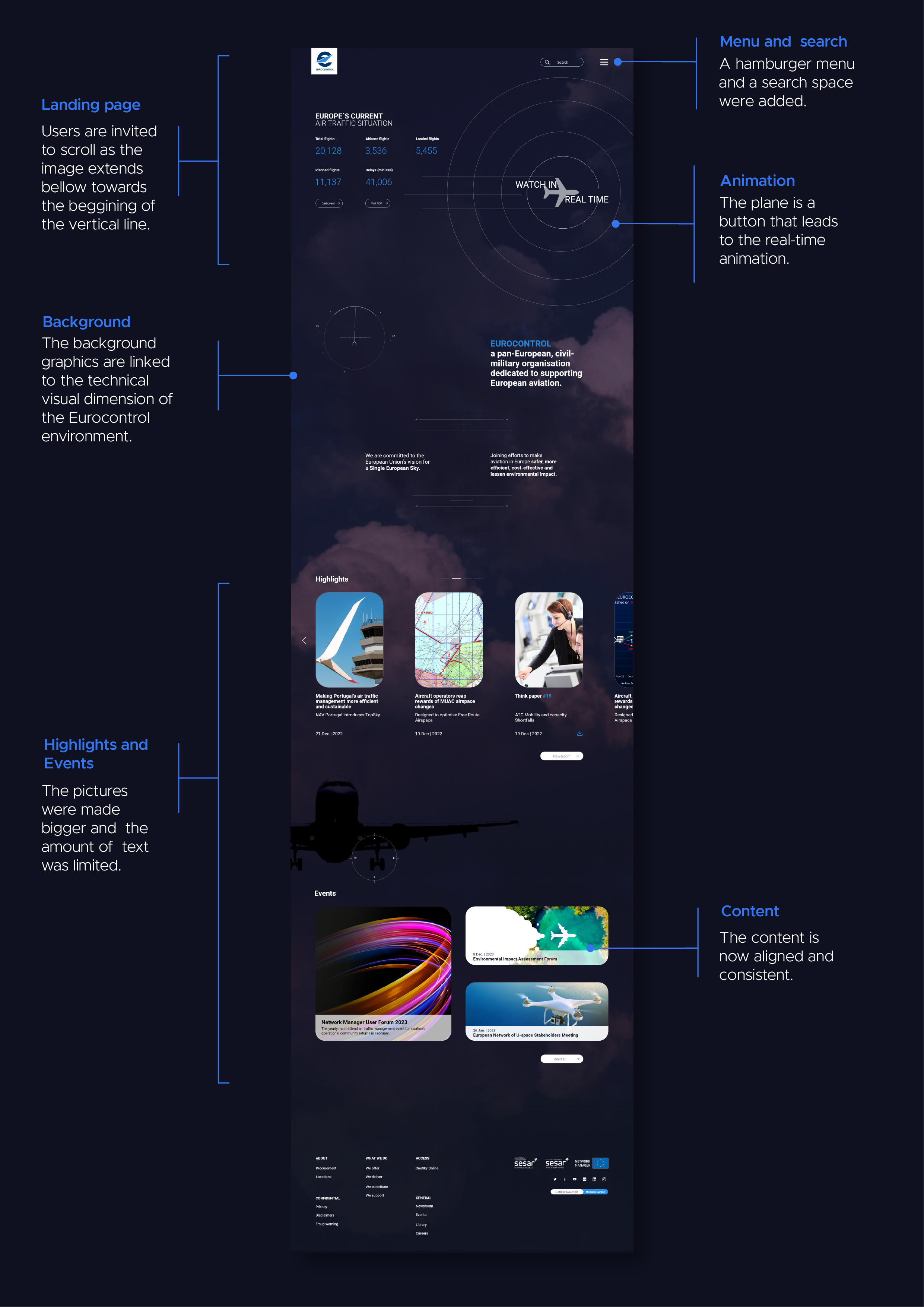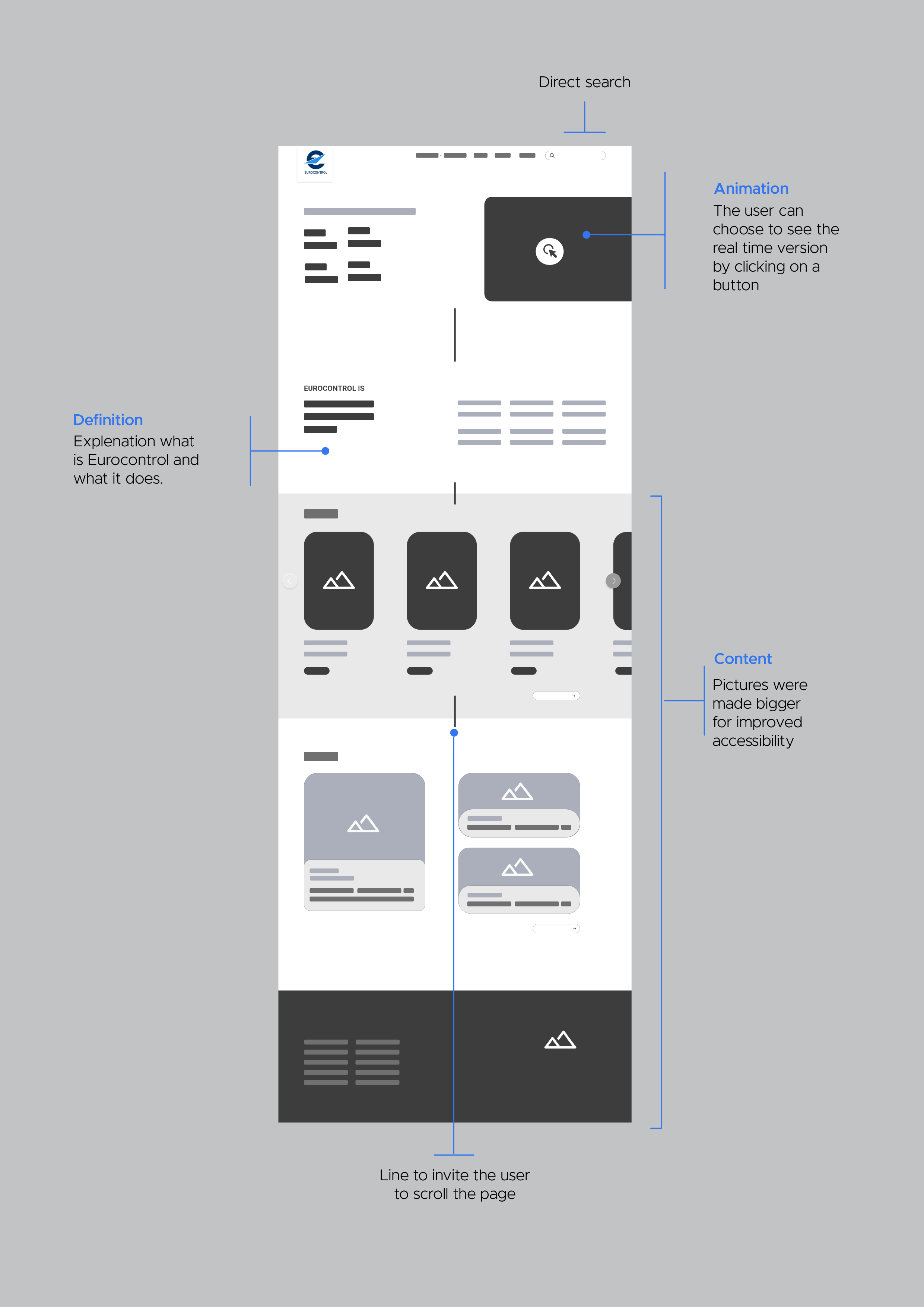 After the gathered data a wireframe was sketched considering the visual dimension and context of Eurocontrol.